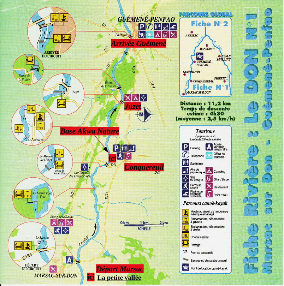 portage des embarcations en diffèrents points sur la 1ére partie du parcours